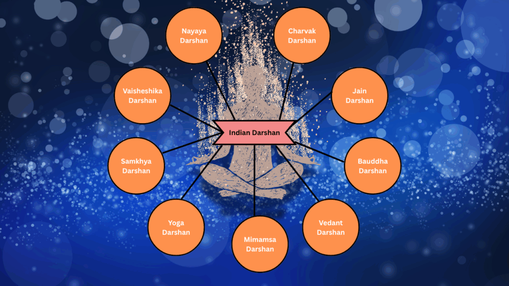 There are total nine Darshans. From which 6 are considered as the Astik Darshan means who accept the authority of the Vedas and three are considered as the Nastik Darshan does not accept Vedas.